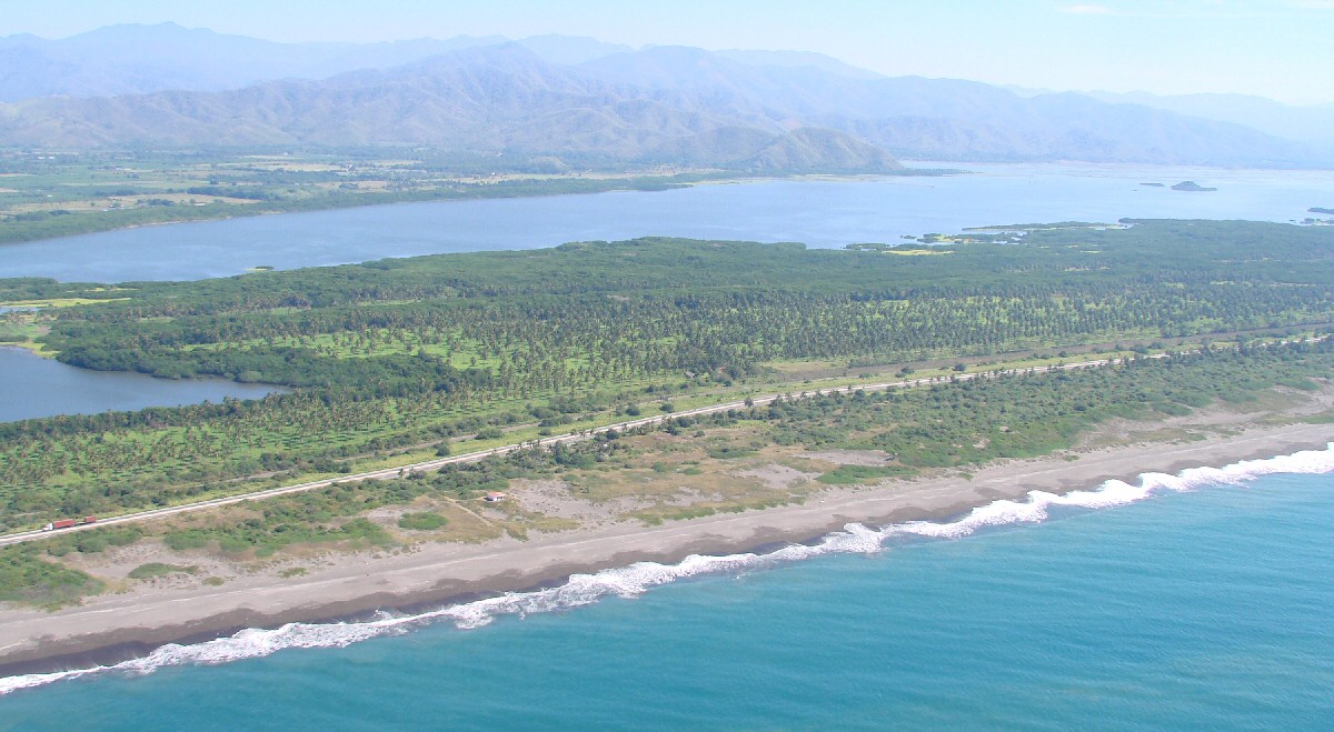 Laguna Cuyutlán in background. Hwy 200 and the railroad and Playa Cuyutlán run straight and parallel for some 10 miles to Cuyutlán