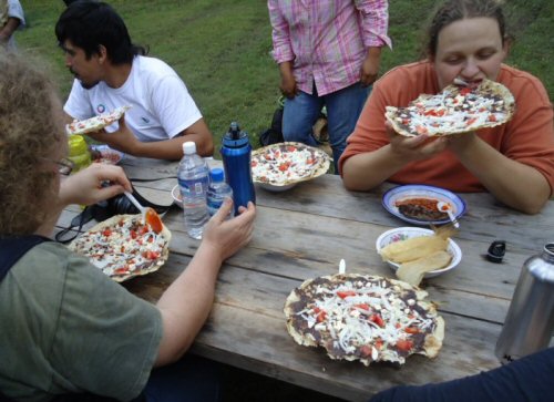 Most of those who had come from Oaxaca for only the final day's activities had arrived by noon, in time for lunch. The comida was once again self serve, everyone seated along large tables extending the length of a nondescript building, chatting with friends, as well as with strangers. After all, hiking and hunting for hongos silvestres in Oaxaca's Sierra Norte, indulging in down home Mexican food as never experienced before, and supporting regional ecotourism were more than sufficient a tie to bind.